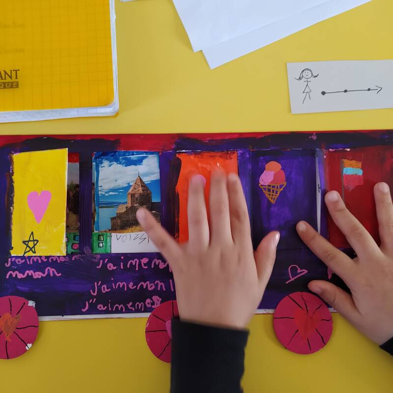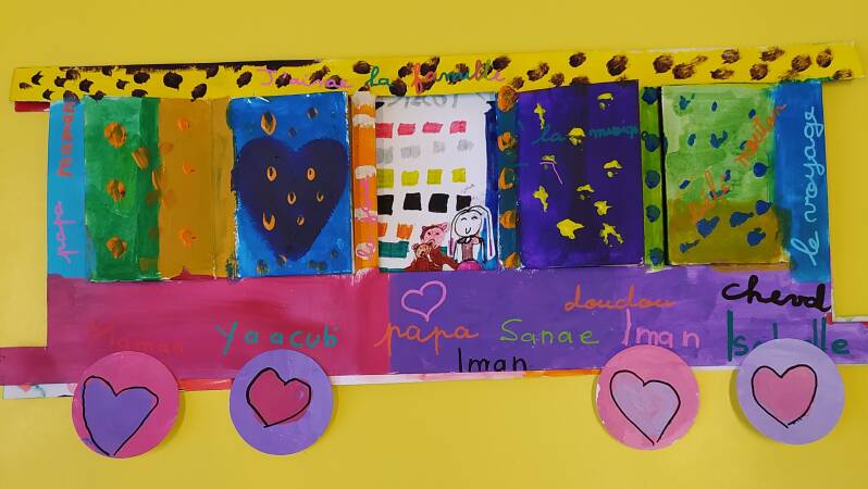 Ici, j'ai invité des élèves primo arrivants à présenter leur parcours de vie sous la forme d'un petit wagon.