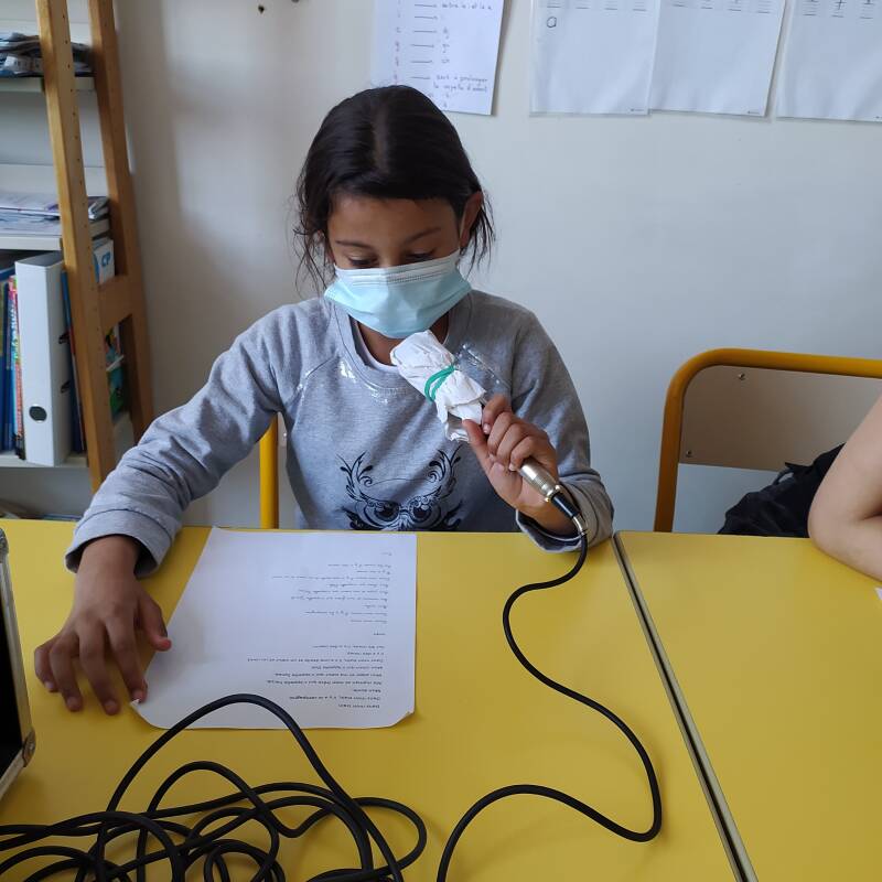 (projet de dessin, écriture et voix, réalisé dans une école primaire à Saint-Fons (Rhône) près de Lyon, auprès d'élèves arrivant en France.