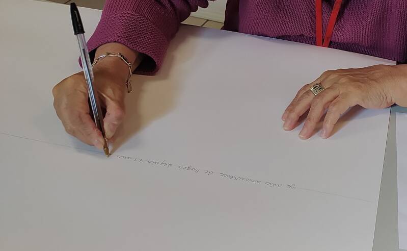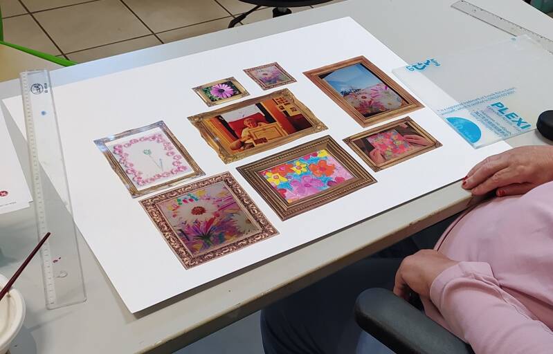 Enfin, des montages photos se sont greffés grâce à l'aide de l'art-thérapeute. Les personnes qui savaient écrire ont écrit un calligramme autour de leurs photos.